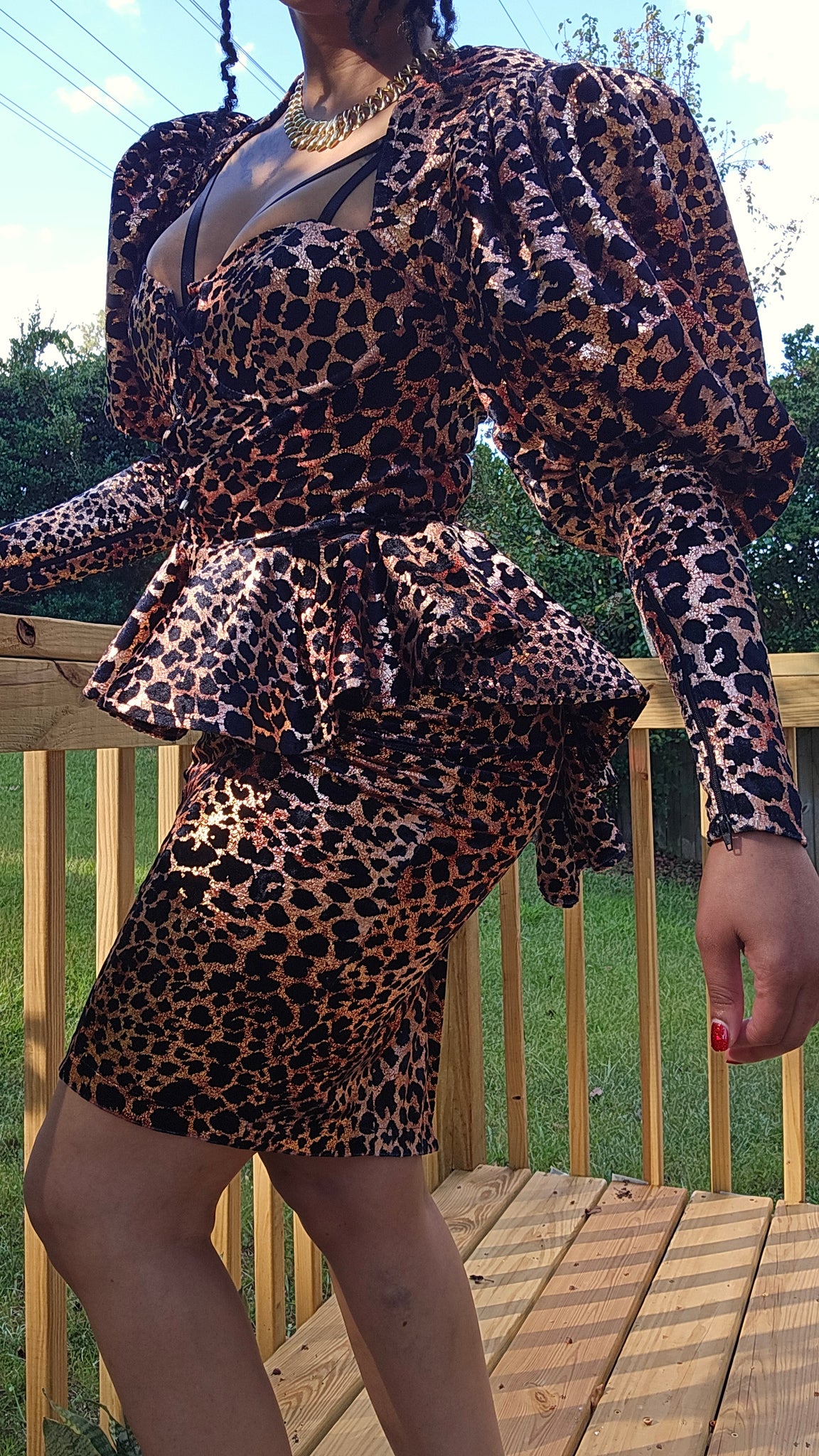 THIIIISSSS!!! IS!!! A SET!!! Who's getting her!?!?!?! She tiny! But she is cute!!! Skirt tagged a vintage medium. 13in waist. 18in. hips. 25in. long. Zip back. Top is corset design but no bone. Side zipper closure and arm zip closures are very cool. Top Tagged a small. Ptp 17in. Waist 13in. This outfit is a show stopper. It's sure to cause a disturbance! So be careful girl!